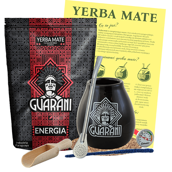 Guaraní es la yerba mate paraguaya cultivada en el departamento de Itapúa cerca de la frontera con ArgentinaGracias al clima amigable el área siempre ha sido popular entre las empresas yerbateras. Yerbera z yerba mate Guarani Energia con Guarana. Zestaw Yerba Mate Yerbomos Bombilla Akcesoria.
